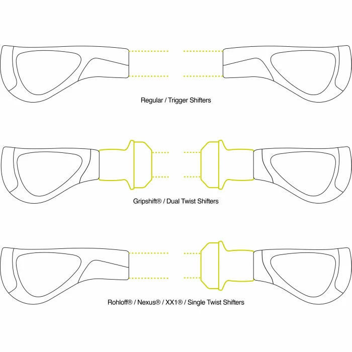 - Disse greb er ikke egnede til brug med kulfiberstyr.